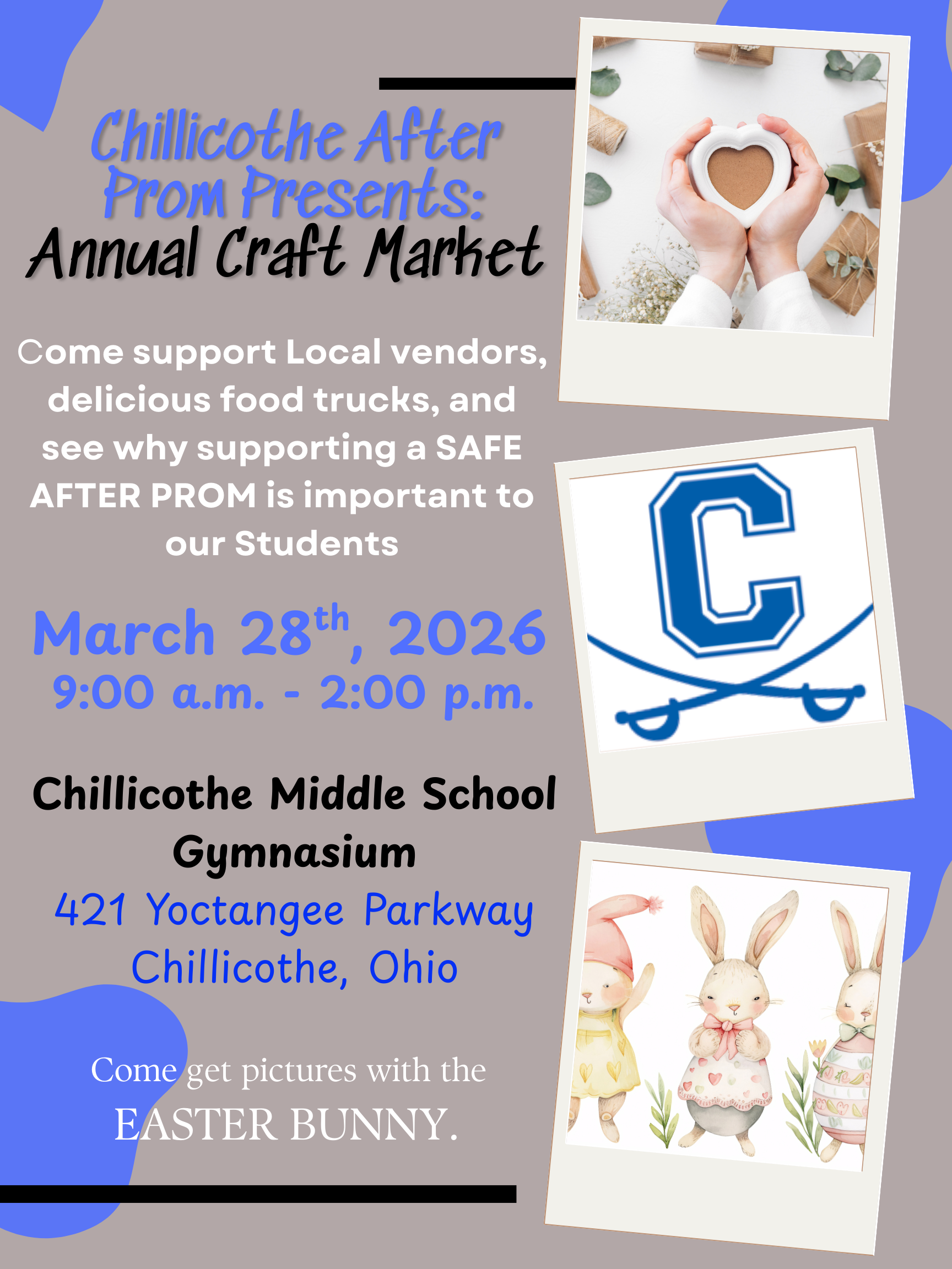 Our next event is Chillicthe After Prom's: Annual Craft Market Chillicothe Middle School – Gymnasium 421 Yoctangee Pkwy Chillicothe, OH 🕘 Saturday Mar 28th 9 AM – 2 PM